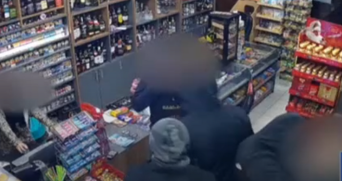 Групата напада две момчета, които пазаруват в магазина. Единият от тях е изкаран навън, където е бит и съблечен, другото момче също е съблечено, а на кадрите от охранителната камера се вижда как получава силен удар с юмрук в главата и едва не пада на земята.