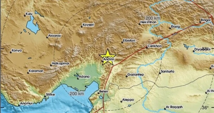 Трусът е бил с епицентър на 57 километра северозападно от Кахраманмараш – град с население от 376 000 души, и на 14 километра североизточно от Гьосун. Дълбочината му е била на пет километра.