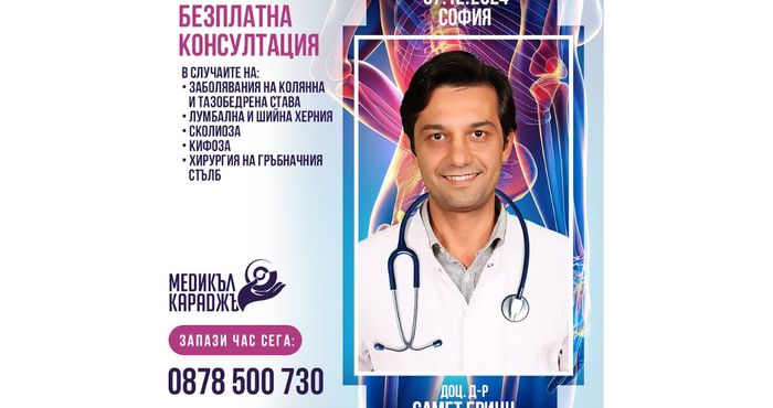 На 7-ми декември 2024 г., в гр. София, Здравен информационен център „Медикъл Караджъ“ има удоволствието да посрещне отново доц. д-р Самет Еринч, специалист по ортопедия и травматология от болница Медикъл Парк Флория, Истанбул. Доцентът ще проведе безплатни консултации на пациенти, които: