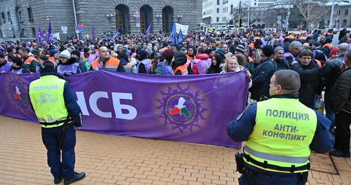 Протестът се прави преди началото на заседанието на Националния съвет за тристранно сътрудничество, на което ще бъде обсъден проектът на Бюджет 2025. Заседанията на Съвета се провеждат в сградата на МС, предаде БТА.