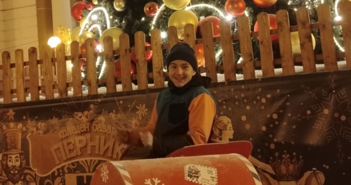 Момчето е застанало до кутия с пожелания за дядо Коледа и грее от щастие, както родителите му.