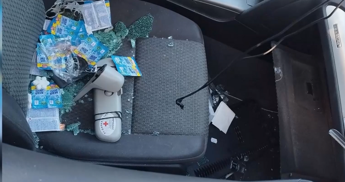 Стъклата са от счупените прозорци на автомобила ѝ . „Липсват външна батерия, огледалото за задно виждане, две жилетки светлоотразителни и две пакетчета солети“, посочи тя.
