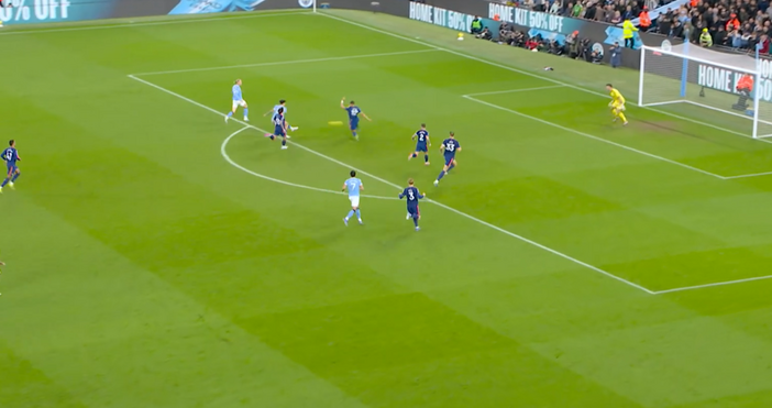 Радостта на гостите бе кратка. В 27-ата минута "гражданите" си върнаха преднината. Ерлинг Холанд бе изведен в наказателното поле, центрира за Нико О'Райли, който с глава бе точен за 2:1.