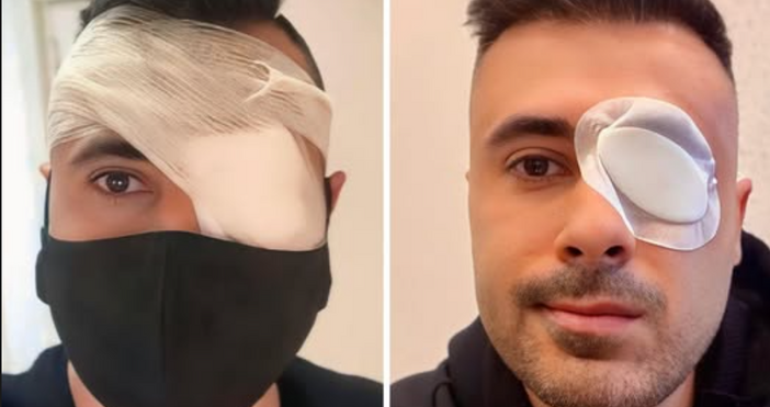 Преди 5 години по същото време отново са ме оперирали… И вижте как са ме опаковали като мумия. Цялата глава е в бинтове, сякаш съм бил на военна мисия. Направо си изглежда страшно. Другата снимка е ясна - от тази година в Турция. И интересното е, че и двете операции са на едно и също око.