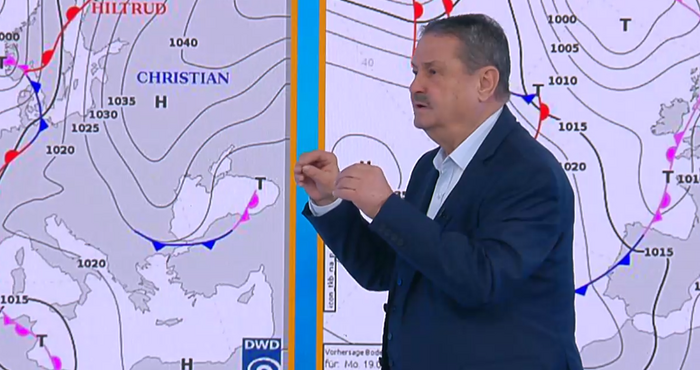 Кристиян ще предопредели как ще изглежда синоптичната обстановка. Този студен фронт ще нахлуе от североизток, а пък от понеделник пак е Кристиян. Това е един огромен антициклон по неговата източна периферия, където обикновено точно в тази източна част е най-студения въздух. Ще нахлуе доста хладен студен въздух с арктичен произход, и особено в Украйна и в Румъния ще бъде жестоко студено през следващата седмица, продължи Рачев.
