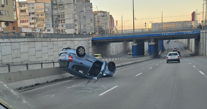 21-годишната водачка на лек автомобил е загубила контрол над превозното средство, което след удар в разделителните средства между двете платна се е обърнало по таван. Това съобщиха от полицията за катастрофата рано тази сутрин, за която алармира читател на Петел.бг, станал очевидец на пътнотранспортното произшествие.