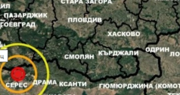 Епицентърът на труса е бил на 32.5 км североизточно от град Серес и на 157 км от София, показва справка в сайта на Националния институт по Геофизика, геодезия и география към БАН, пише Блиц