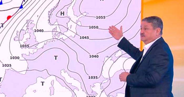Вчера беше доста студено и така ще си остане още 14 дни. Температурите ще са около и дори по-ниски от нормата за първата половина февруари месец. За това е виновен този огромоен картоф - това е един много-много голям антициклон, който много отдавна не е бил над европейската територия, където обикновено му е мястото. Той е с много високо атмосферно налягане. Така че ние усещаме потока от хладен въздух в момента от него, който ще продължи поне в следващите 10 дни, а ние допълнително при ясното време ще си правим студа на Балканите. Цяла Европа е под негово влияние и всички циклони, които носят валежи и по-топъл въздух, отиват на север.