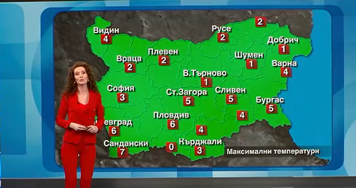 Съботното утро отново ще бъде мразовито, с минимални стойности от минус 8 градуса по котловините, до минус два градуса край морето. Сравнително студено ще остане и през деня. Максималните показания на термометрите ще бъдат от един-два градуса в североизточните райони, до около шест - седем градуса в южна България, обясни още тя.