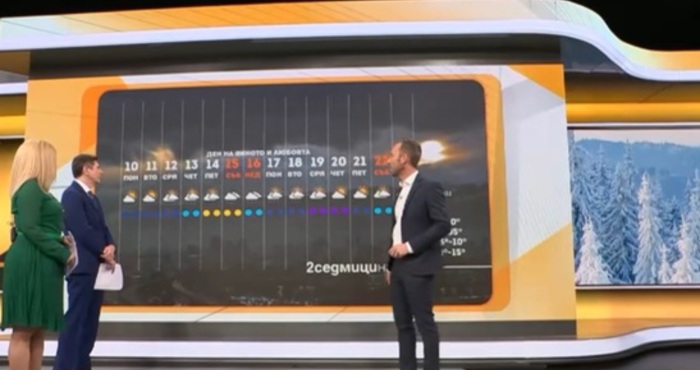В Деня на любовта обаче дневната температури ще достигне между 10 и 14 градуса, уточни Василковски.