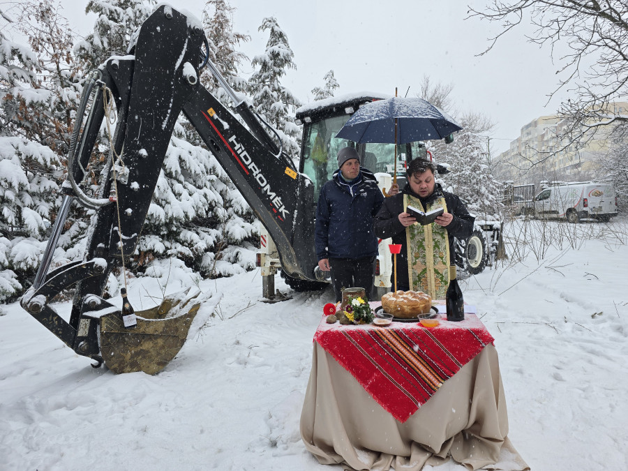 Отец Иван отслужи водосвет, с който благослови начинанието. Три камъка бяха наречени за здраве и благоденствие и по стар български обичай ще бъдат положени при изливане на основите на сградата в посоки Изток, Запад и Юг.