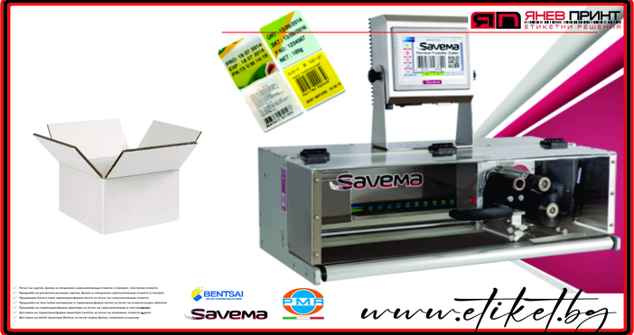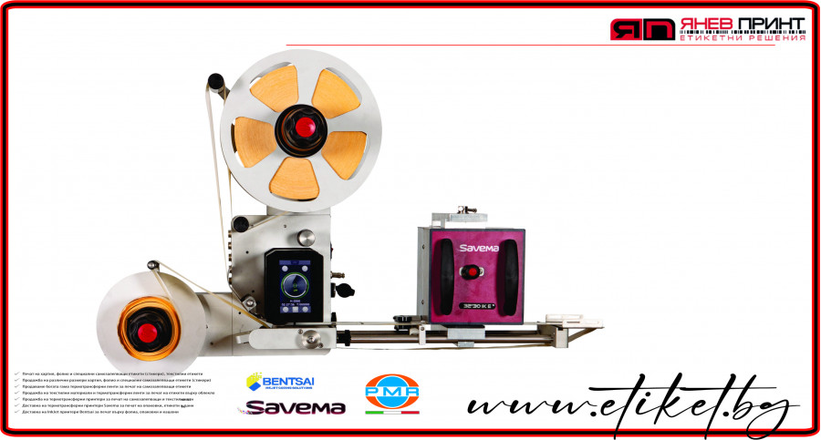 С принтерите за печатат етикети върху фолио - вие може да отпечатате вашите етикети с всички променливи на вашия етикет, могат да печатат цялостен етикет и да заменят съществуващите Ви етикети с директно отпечатване на етикет върху опаковачния материал. Подходящи са за всякакъв вид фолио. Печататът на етикетите остава непроменен както при високоскоростни машини за печат на етикети , така и при машини във пуск/старт режим за печат на етикети. Надежноста на принтера за печат на етикети е гарантирана и проверена, работят с японски термо глави KYOCERA и са се доказали на Българския пазар като надеждни и здрави машини. Имаме клиенти с над 6 милиона отпечатъка годишно , при които принтерите за печат на етикети все още не са ревизирани. Няма и задължителен сервиз на определин брой отпечатаци както при други машини за печат на етикети. Работната амплитуда на Термо Трансферните Принтери за печат на етикети на Savema e от 2 до 60 градуса по целзий, подходящи са дори за запрашени производства.