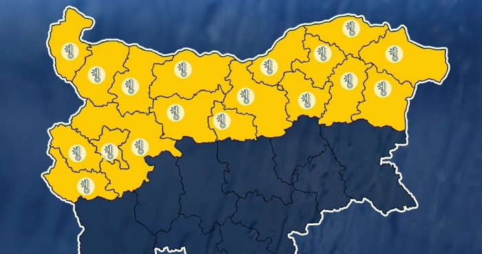 Жълт код за ниски температури обявиха от Националния институт по метеорология и хидрология (НИМХ) за 18 области на страната за днес.