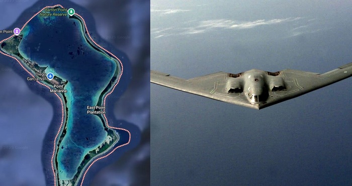Островът Диего Гарсия е коралов атол в Британската индоокеанска територия, разположен на около 3800 км южно от Иран. Сателитните изображения показват четири хангара, предназначени за самолетите B-2 на летището.