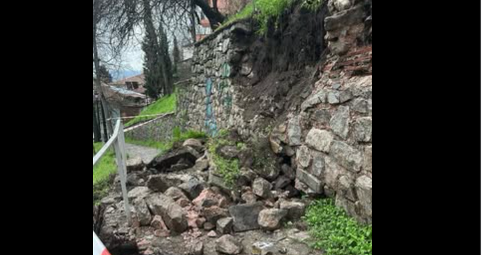 Част от подпорна стена в източната част на Небет тепе се е срутила най-вероятно вследствие на дъждовете през последните дни - това съобщи в профила си във Фейсбук кметът на Пловдив Костадин Димитров.