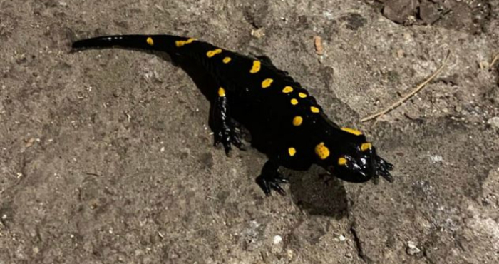 Жител на столичния квартал „Драгалевци“ се натъкна на неочакван гост по време на вечерна разходка. На плочките пред дома му спокойно се разхождал черен „гущер“ с ярки жълти петна – дъждовник. Мъжът сподели снимки от срещата във Facebook, а публикацията му предизвика вълна от реакции – стотици харесвания и коментари, много от които изразяваха изненада от появата на подобно влечуго из оживеното софийско плато, пише Глас нюз.