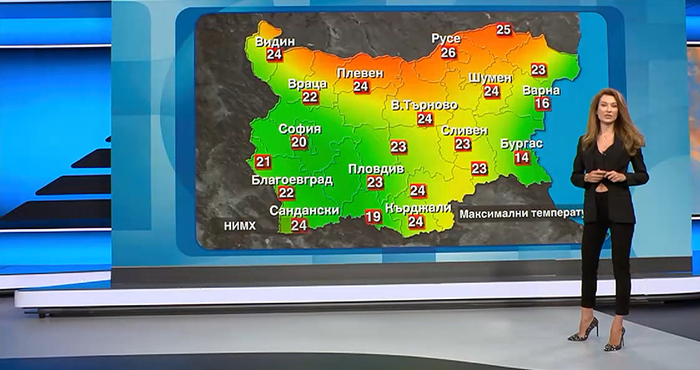 До края на седмицата атмосферата в страната ще остане нестабилна, а температурите бавно ще се понижават, предупреди водещата на Нова телевизия Никол Станкулова.