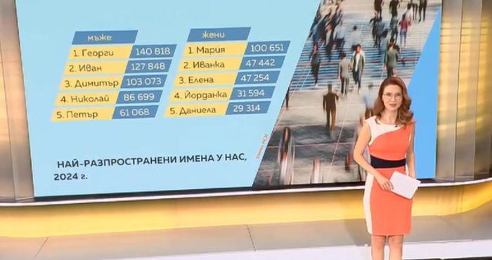 Сто и четиридесет хиляди осемстотин и осемнайсет. Точно толкова български мъже носят името Георги, най-разпространеното име у нас и през миналата година по данни на Националната статистика. Следват го имената Иван и Димитър, като и двете ги носят над сто хиляди българи. След тях се нареждат Николай и Петър, които пък затварят групата на първите пет.