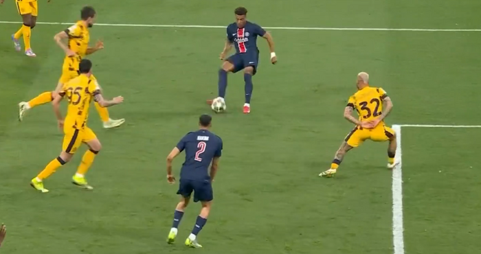 Отборът на Пари Сен Жермен води с 4:0 на Интер във финала на Шампионската лига в Мюнхен. Ашраф Хакими изведе французите напред в 12-тата минута, а в 20-ата Дезире Дуе реализира втория гол. В 63-тата Дуе беше точен още веднъж, а след още десет минути се разписа и Хвича Кварацхелия.