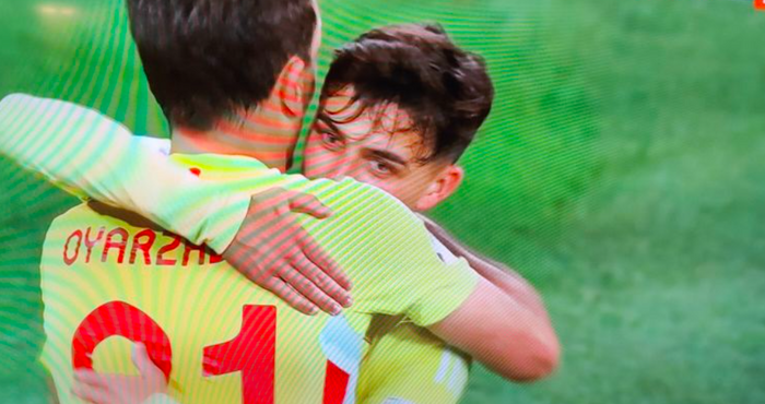 Първото голово положение дойде в петата минута, когато Жоао Невеш стреля от воле, но топката мина покрай вратата. В 13-ата минута Ямал беше фаулиран на границата на наказателното поле, като именно той изпълни прекия свободен удар, който се оказа доста разочароващ. Малко след това Педри нанесе диагонален шут по земя, но и той не намери целта. Следващият, който се отчете с пропуск, беше Уилямс с техничен изстрел от труден ъгъл. Натискът даде резултат в 21-мата минута, когато Испания взе аванс с първия точен удар в мача. Тогава Ямал пусна хитър пас, при който Рубен Диаш не успя да избие топката достатъчно добре и така в суматохата тя отиде при Субименди, а той с шут отблизо я прати в мрежата. Ситуацията беше прегледана с ВАР за възможна засада на халфа секунди по-рано, но голът бързо беше зачетен, предаде Спортал.