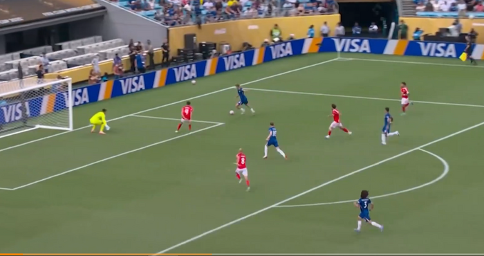 Натискът на Челси даде резултат в 64-тата минута. Тогава Рийс Джеймс изпълни по прекрасен начин един пряк-свободен удар и изненада Трубин, който явно очакваше центриране, вкарвайки за 0:1.