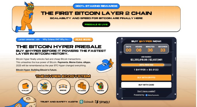 Bitcoin Hyper (HYPER) привлича вниманието на инвеститорите с амбициозната си цел да да добави Layer 2 скалируемост към Биткойн, обещавайки по-бързи и евтини трансакции, както и DeFi функционалности. От старта на предварителната си продажба Bitcoin Hyper е събрал повече от $2.2 милиона, показвайки силен ранен интерес.