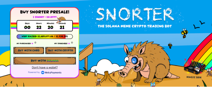 Snorter (SNORT) е крипто бот за търговия в Telegram, базиран на Solana, който комбинира забавната природа на меме койните с реални търговски инструменти. Предпродажбата вече е събрала над $1.5 милиона само за месец, което говори за сериозен интерес.