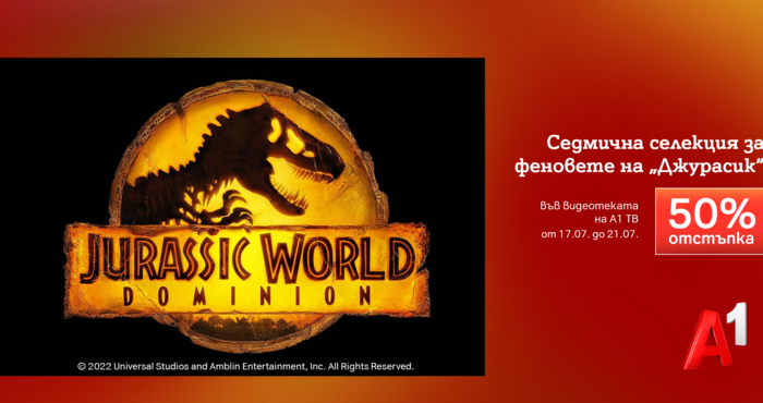 В разгара на летния сезон видеотеката на А1 ТВ ще предложи специална тематична селекция с 50% отстъпка. От 17 до 21 юли вниманието е насочено към една от най-емблематичните поредици в историята на киното – „Джурасик“.