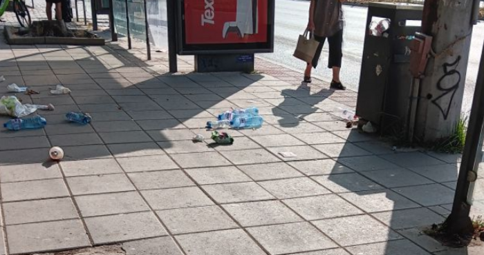 Неприятна гледка на спирката на бул. "Осми Приморски полк" във Варна.
