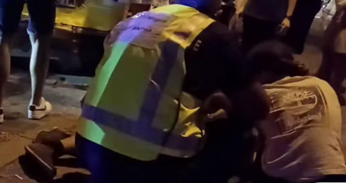 От кадрите на видео, което се разпространява в социалните мрежи се виждат множество хора, които опитват да помогнат на младежа, който е паднал на тротоара.