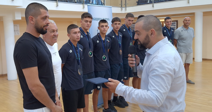 Варненските ватерполисти, които станаха втори в Европа в Дивизия 1 до 16 години, бяха наградени днес в Юнашкия салон.