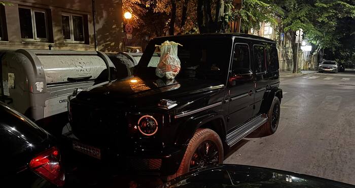 От нея става ясно, че луксозният джип е спрял неправилно, точно до кофите за боклук.