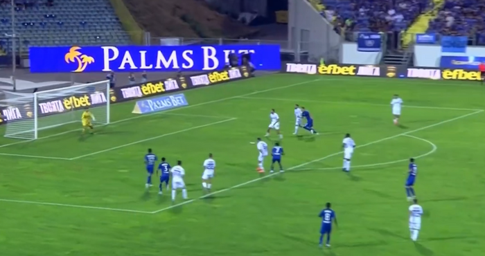 Едва бе изминала една минута от началото на срещата и дойде първата опасност. Тя бе пред вратата на "сините", след като Янис Гермуш се освободи в наказателното поле и с удар от малък ъгъл принуди Светослав Вуцов да се намесва.
