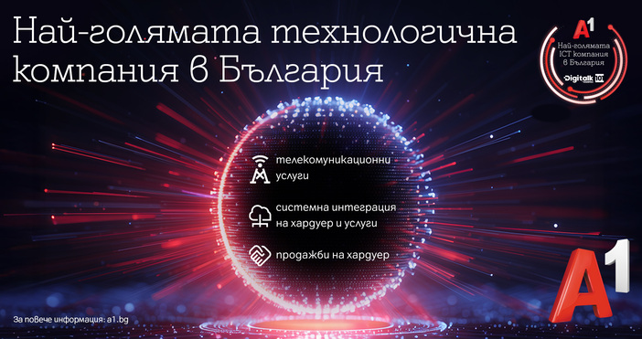Класацията DigitalK 101 определи А1 като лидер на пазара на телекомуникационни услуги, системна интеграция на хардуер и услуги, и продажби на хардуер за 2024 г.