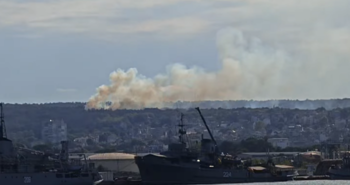 Облаци дим се издигат южно от Аспаруховия мост във Варна.