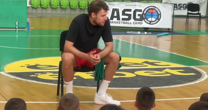 Баскетболната суперзвезда Александър Везенков и директорът "Развитие" към БФБаскетбол - легендата Пини Гершон бяха специални гости на кампа Balkan-ASG Pro Camp, видя Sportal.bg в "Арена Ботевград".