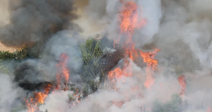Пожарът е обхванал значителна площ от борова гора. Няма засегнати къщи.