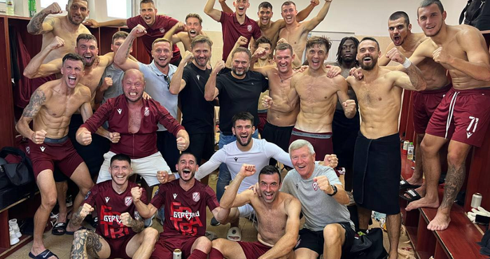 Изключително щастлив от играта и резултата, Бакуревич влезе в съблекалнята на отбора след двубоя и празнува заедно с футболистите.