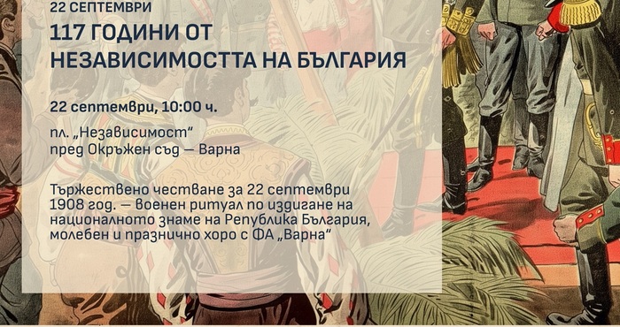 На 22 септември от 10:00 ч. на площад „Независимост“ Община Варна организира общоградско честване на 117 години от обявяването на Независимостта на България.
