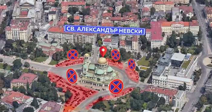 Престоят и паркирането на превозни средства на всички паркинги в заоната около пл. "Св. Александър Невски" се забраняват от 03.00 ч. тази нощ до 20.00 часа утре, предава Нова тв.