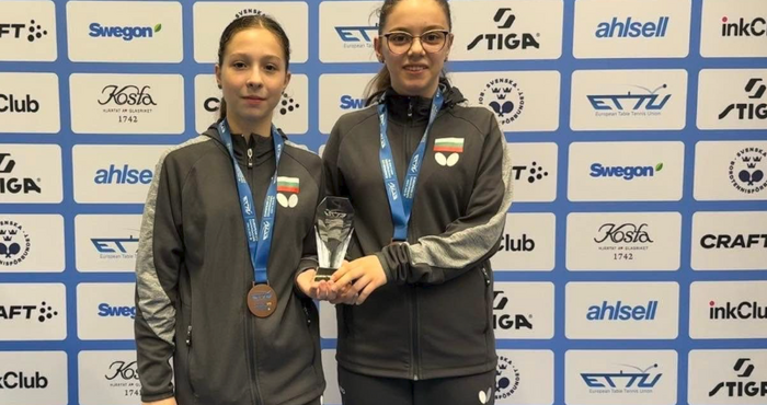 Страхотните състезателки на СКТМ "Комфорт" Полина Енчева и Белослава Балканска се завърнаха във Варна, след като спечелиха бронзови медали с националния отбор на България на Европейското първенство по тенис на маса за момичета до 13 година в Коста, Швеция.