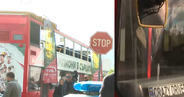 Ниско долу на преднотото стъкло се виждаше Crasy driver, което в превод означава луд шофьор.