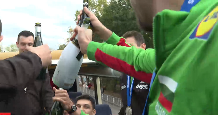Парадът на шампионите започна. Родните волейболисти вече пътуват с открития автобус и приемат овации от излезлите по улиците хора. Преди да са качи в автобуса, Александър Николов потвърди, че са готови да изпитат народната любов. Емоционално изявление пък направи Джанлоренцо Бленджини.
