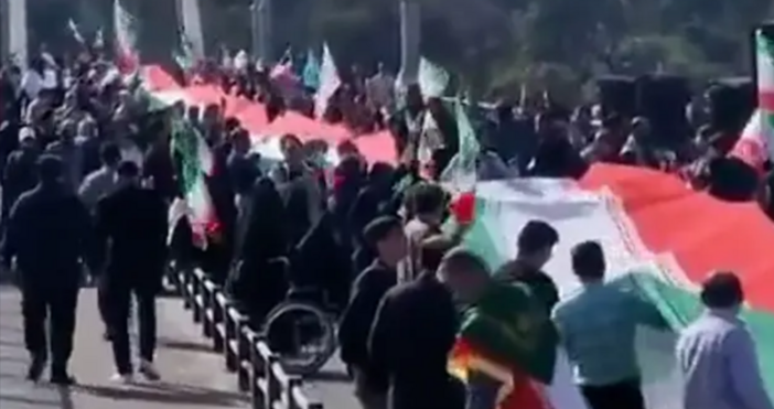 Кадри, разпространени от местните медии и потвърдени от международните информационни агенции, показват струпвания на хора пред стратегически обекти. Основна точка на напрежение е електрическата централа "Казерун", където пред охладителните кули на ТЕЦ-а преминават групи с национални знамена. В град Ахуаз шествие пресече "Белия мост", носейки иранско знаме с дължина десетки метри.