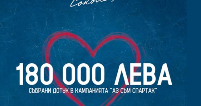 180 000 лева вече са осигурени за футболния „Спартак“ от кампанията за спасяването на клуба. „Аз съм Спартак“ ще продължи в следващите дни с пълна сила.
