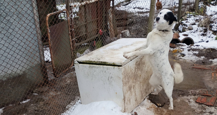 Кучето е било вързано с верига и държано в кал и студ без достъп до храна.