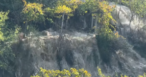 От кадри в мрежата се вижда, че водата извира от насипа и тече буйно по улицата.
