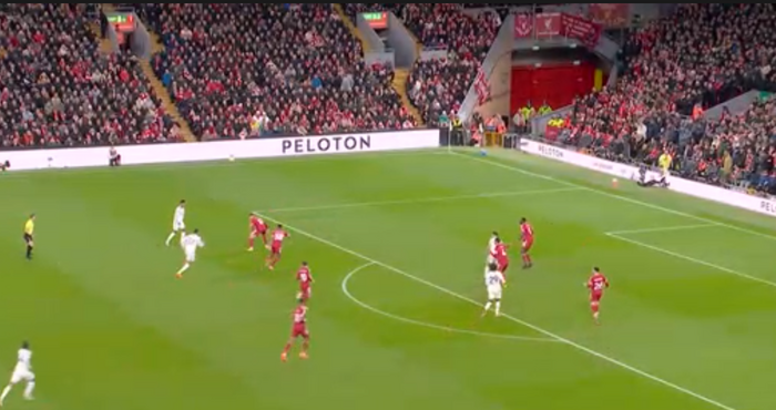 Последва малко по-спокоен период, което устройваше гостите. Отборът на Слот се страеше, но така и не успяваше да създава чисти положения. Нарушение срещу Гакпо малко пред наказателното поле даде шанс на Собослай да стреля от добра позиция. Неговият удар бе отразен от Мартинес. Към края на полувремето мърсисайдци имаха малко повече контрол, но защитата на съперника се справяше отлично. Малко преди почивката Екитике прати топката в мрежата след удар с глава, но бе в засада и попадението бе отменено.
