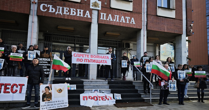 Преди началото на днешното заседание граждани се събраха пред съдебната палата с искания за справедлив процес. Протестиращите за кратко блокираха кръстовището пред съда.