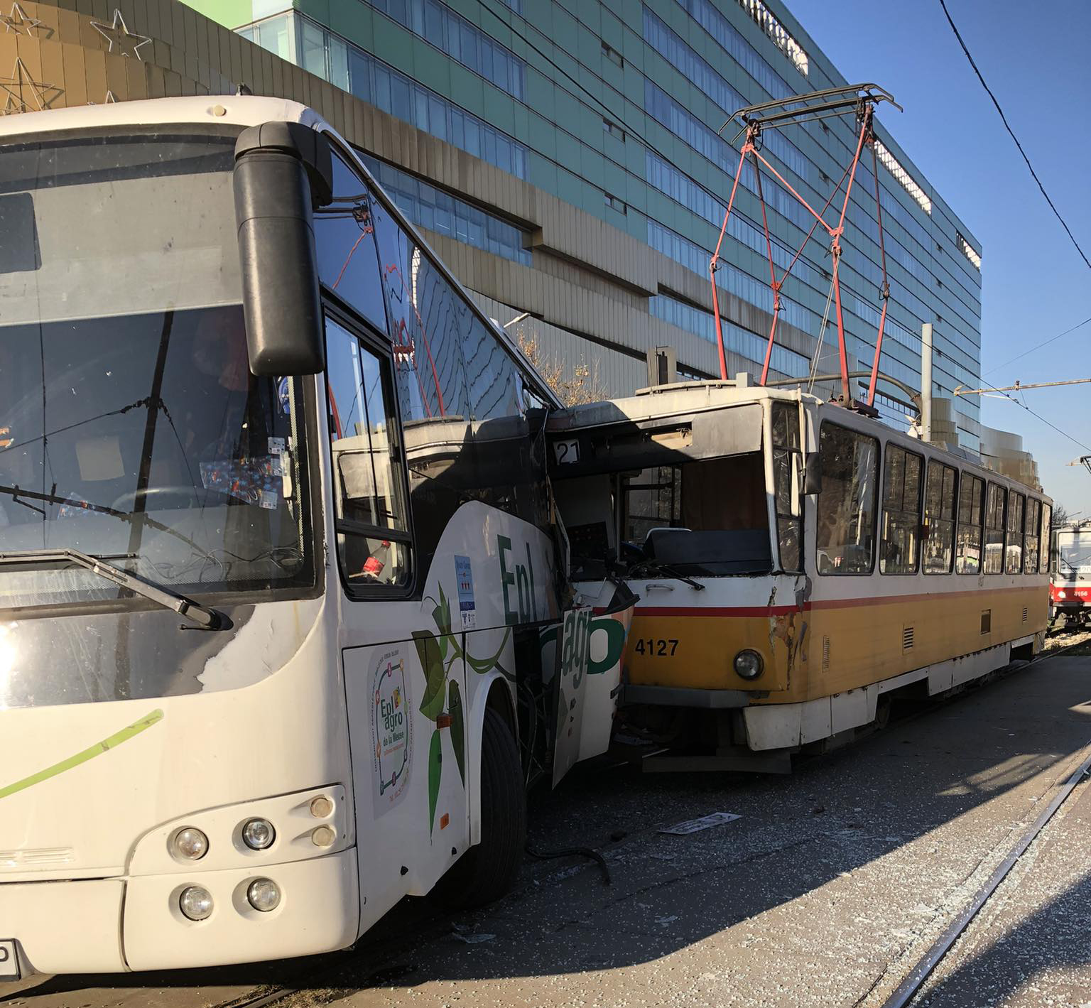 Трамвай и автобус се блъснаха на бул. "Ситняково" в София.